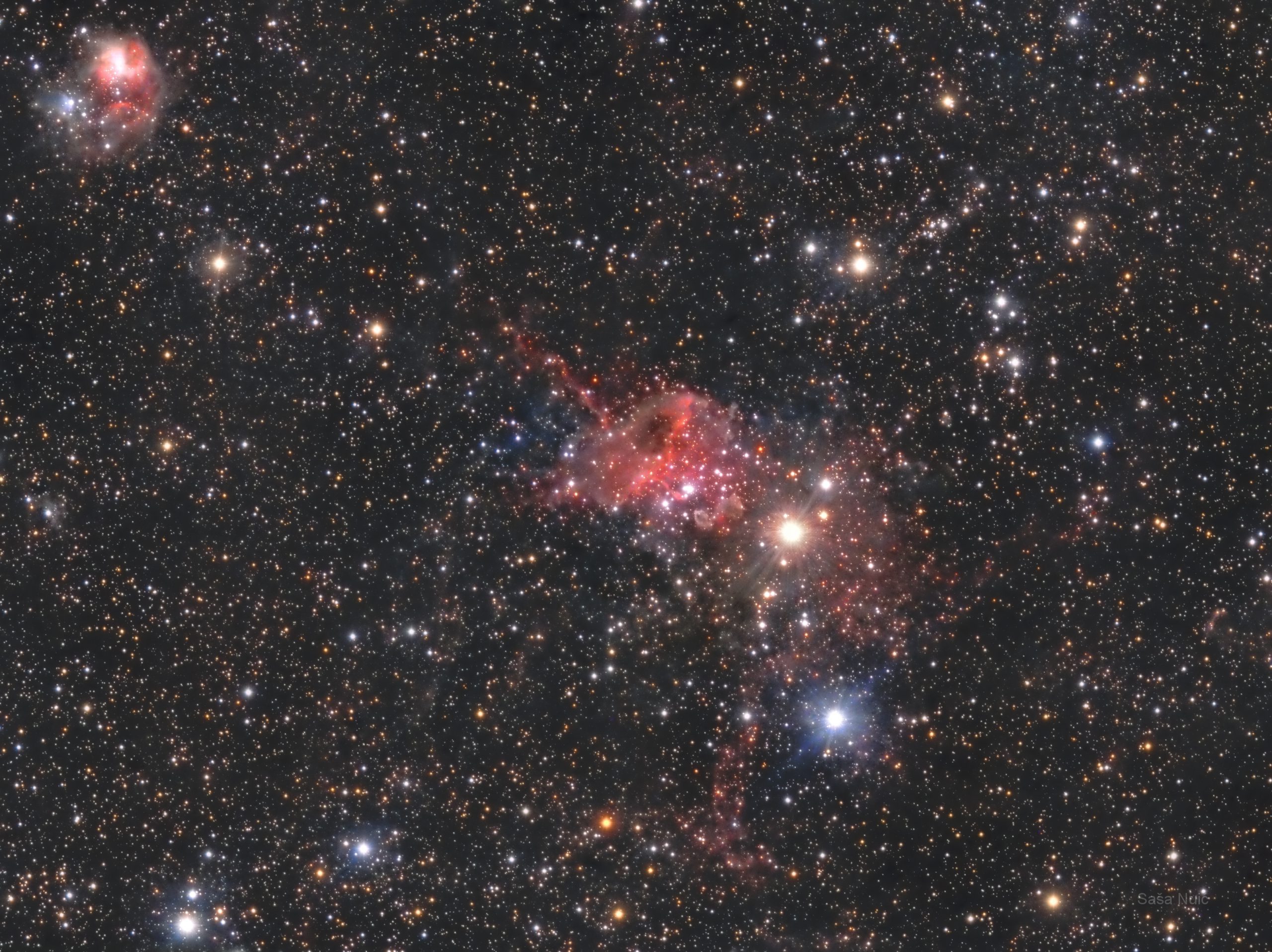 Maglice PAuk – IC417 (dolje desno) i Muha – NGC1931 (gore lijevo)